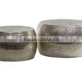 COFFEE TABLE SET / SILVER NICKEL PLATING HAMMER STOOL OR TABLE / METAL ROUND COFFEE TABLE