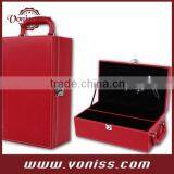 Promotion 2 bottle Black PU Leather Wine Box, Popular Item for Wedding Wine Carrier Tote, With wine opener, wine ring and pourer