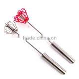 Factory price 14'' long Stainless steel +silicone hand press egg beater Semi-automatic rotation egg whisk