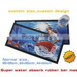 Customized design printed custom rubber bar mat, super water absorb custom rubber bar mat