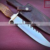 Bowie Hunting custom handmade stainless steel 15 inch Hunting knife Solid walnut wood Handle and Brass Thumb Guard / Clip