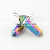 JF2251#60 Wholesale Rainbow Plated Natural Stone Point Pendants,Chakra Hexagonal Pendant Quality Choice