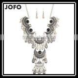 Vintage Flower Carved Hollow Bib Collar Droplets Pendant Gem Necklace Earrings Set