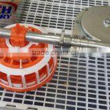 Red plastic pan feeder and chicken drinking system (poultry feeder and drinker)