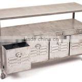 Vintage Industrial Console Table, Antique Look metal console table on wheel cart