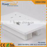 European UK 3 pin Grounded earthed USB wall switch socket with multiple charging port 250V 13A TUV Ce standard