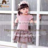 latest design cute trendy short sleeves layered skirt pink velour kid birthday dress