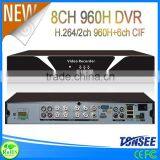 8CH CCTV DVR for IR Camera System 2ch 960H+6CH CIF Digital Video Recorder Made in China