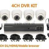 1/3"sony CCD 700TVL motion detection alarmH.264 network Stand alone 4ch DVR+Dome IR Camera 4CH D1 H.264 DVR KIT(DVR-KIT204EF/30)