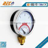 (YW-100A) 100mm steel material cheap price bottom thread double pointer type mechanical temperature gauge