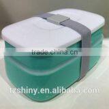 2016 Microwave Safe Double Layer Plastic Kid Bento Box with Band 2 compartmentPlastic Lunch box with Cutlery Set