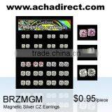 24 pair display board Square Cut (Cz) Magnetic Earrings In Assorted Colors Of 5mm And 6mm Sizes