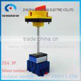 Isolating switch YMD11-25B on-off with padlock handle red yellow aluminum pole 25A 3P operation outside electrical cabinet