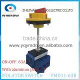 Isolating switch YMD11-63B with padlock handle aluminum pole 63A 3P on-off emergent stop operation outside electrical cabinet