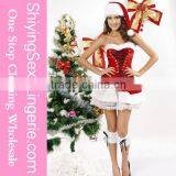 2015 Wholesale Plus Size 3pcs Red Velvet Santa Corset Set Cheap Christmas Dance Costume