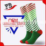 fuzzy knee high and red and green striped socks with circular knitting machine