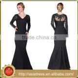ABI-07 Sexy Long Sleeves Sequins Beaded Sheer Zipper Back V-neck Long Mother of the Bride Dress Custom made