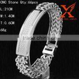 2016 Double Strand Franco Chain Mens Silver ID Bracelets With Thick CZ Diamond
