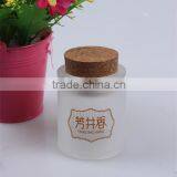 nice decaling pattern mini glass spice/salt jar/container with cork stopper and slugged bottom
