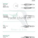 Bishop-Harmon Tissue Forceps, Bishop-Harmon Dressing Forceps criss-cross serrated tips, Sauer Fixation, Manhattan Forceps