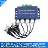 4 channel video balun transceiver for cctv BNC to UTP RJ45 coax adapter transceiver transmission distance 330M