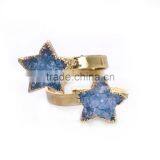 50pcs Natural Raw Stone Ring five-star points Dual Stone Ring Gold Double Ring pewter Adjustable Ring