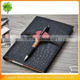 2015 fashion imitation leather Notebook with 6-holes metal clip binder and elastic tape closure/pen holder