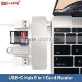 For USB Type-C Laptop For New MacBook Chrome Book Pixel 2 USB 3.0 Type C Hub 5 in 1 Support Charging and Card Reader USB Hub