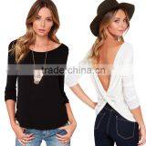 2016 New Spring Fashion Cross-folding Sexy Back V Long Sleeve T-shirts Women HDY-142168157