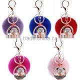 2016 8 Colors 8cm Rabbit Fur Ball Car Keychain New Year Gift Rhinestone Bear Pendant KeyChain Women Gifts Couples Keychain Men