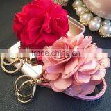 In Stock Leather Strap Flowers Keychain Bag Pendant Car Ornaments Bag Charm For Women Key Chain Buckle Key Ring