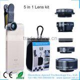 external camera lens for android phone 0.63x Wide Angle+15x Macro+198 fisheye+2x zoom+Filter 5 in 1 phone lens kit