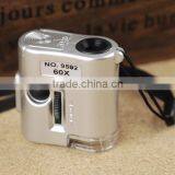 High quality mini 60X pocket microscope jewelry magnifier loupe glass with LED uv light