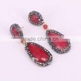 Fashion Red Malaysian Jade Stone Stud Earrings, Water Drop Pave Crystal Zircon Druzy Earrings