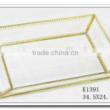Silver Brass Vintage Retro Dressing Table Vanity Glass Tray Trinket Boxes< Glass dressing table tray>< mirror storage glass tray