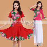 square dance dress suit Digital printing middle-aged and old spring and summer long, short-sleeved adult performance clothing