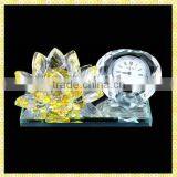 Handmade Unique Exquisite Crystal Lotus Clock Set For New Year Business Gifts Souvenirs