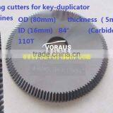 Milling cutters for key-duplicator machines; OD (80mm) thickness(5mm) ID (16mm)(Carbide)