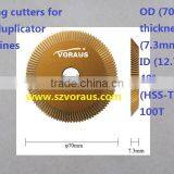 Milling cutters for key-duplicator machines OD (70mm) thickness (7.3mm) ID (12.7mm (HSS-TiN 100T
