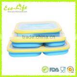 100% Pure Silicone color frame Foldable Lunch Box 600ML, Food Fruit Collapsible Container For Microwave Oven