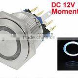 QN22-A1 22mm Mounting Thread Dia. White LED Stainless Push Button Switch 6 Pins