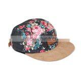 Floral 5 Panel Suede Brim Leather Snapback ,Custom All Over Print 5 Panel Hats,Custom Floral 5 Panel Snapback Hat Wholesale