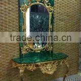 Antique European Wall Mounted Gilt Bronze Malachite Console Table and Mirror Set