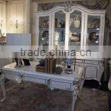 Neoclassical Style Precise Carving White and Silver Bureau Flat Office Furniture Set