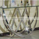 Special Shape Tempered Glass Top Console Table Set With Stainless Steel Base For Home Use