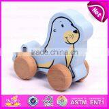 2015 Promotional Kids wooden pull and push toy,Hot sale push pull wooden toys,Cartoon funny wooden pull back animal toy W05B079