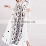 Bohemian Maxi Dresses Long Sleeve A Line Dress Fringe Trim Paisley Print Dolman Sleeve Dress