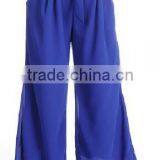 women blue wide leg style hook and loop tie waist overlay chiffon palazzo pants