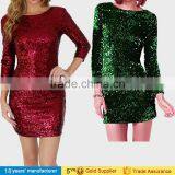 2017 sexy round neck long sleeve slim bodycon shinny bling winter party night prom sequin mini dresses for women lady