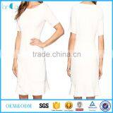 women round neck short sleeve scollop bottom white color tunic office wear formal dress